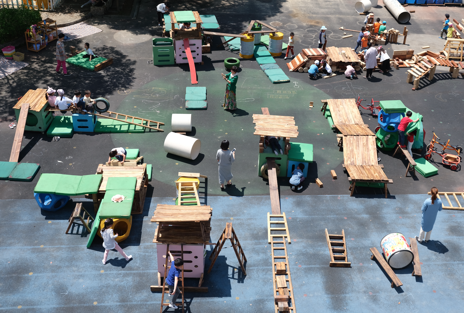 In Anji Play programs, teachers do not structure, guide or direct the activities or outcomes of the child’s experience during play. This means that you will not see Anji Play teachers actively lead a lesson or set out activities for the children.